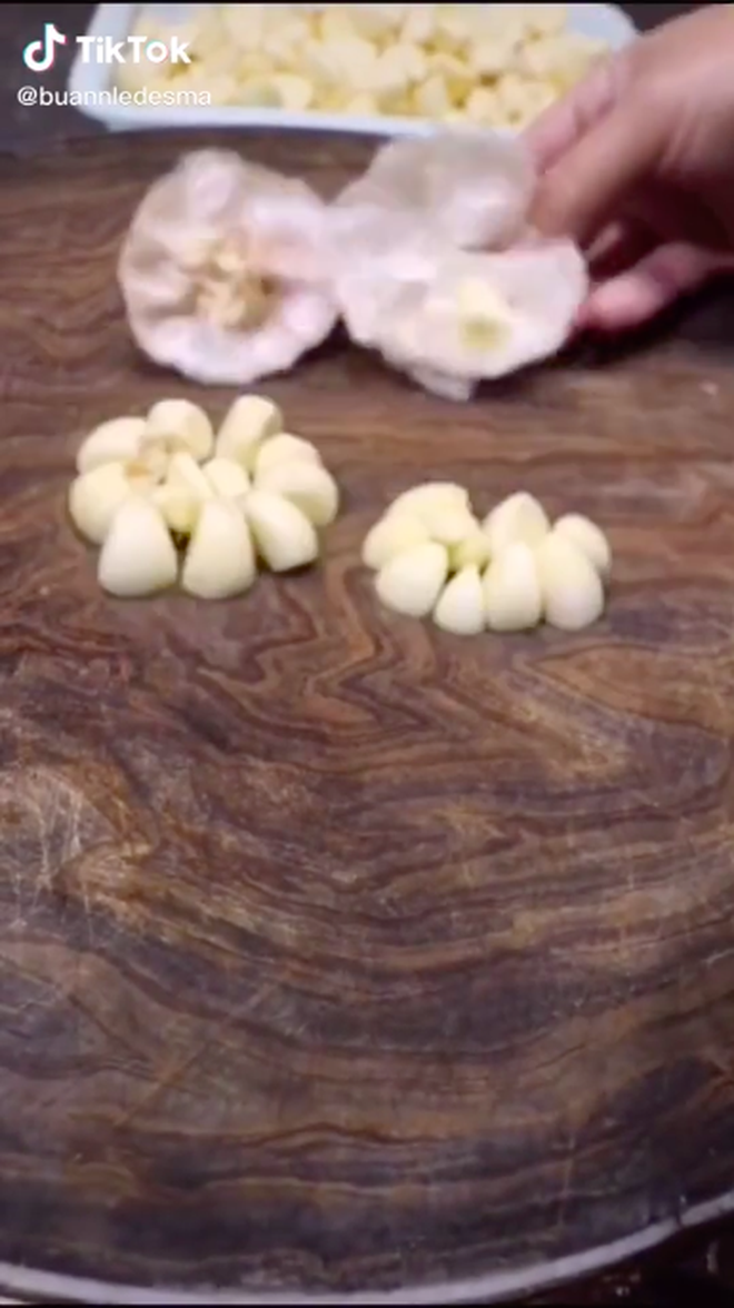 Đoạn clip hướng dẫn mẹo bóc tỏi đang rất viral trên TikTok với gần 8 triệu views (Nguồn: @buannldsma)