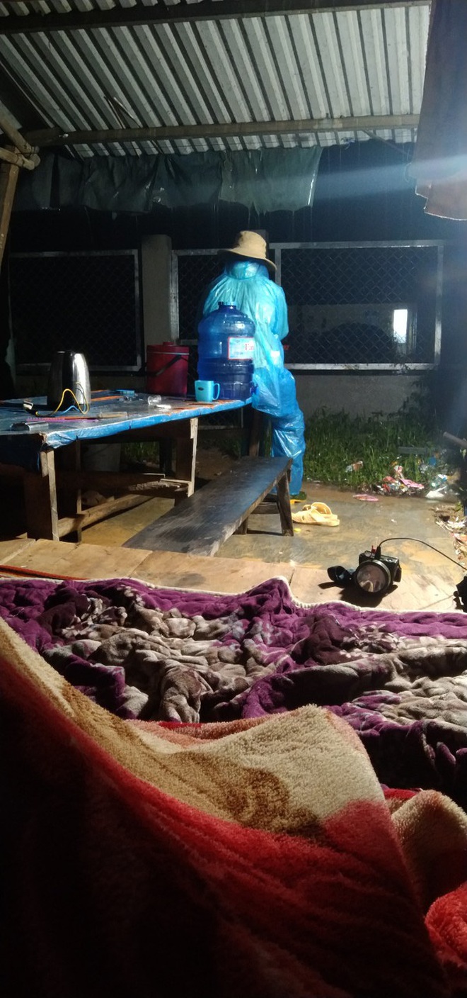 Trước tình hình mưa lớn kéo dài, một số chuyên gia đã trú ẩn ở khu vực dưới nhà điều hành - nằm dưới núi. Còn các công nhân thì chia thành nhiều tốp và trú ẩn rải rác trong các lán trại nằm phía lưng chừng ngọn núi