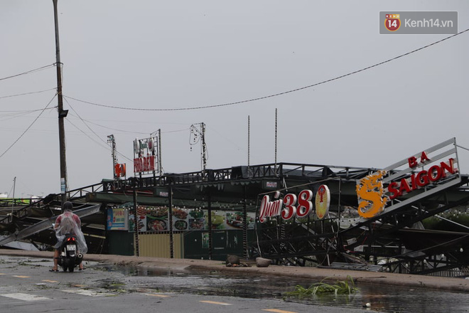 Trong khi đó tại bờ kè sông Trà Khúc, chợ đêm sông Trà tan hoang khi tất cả đều bị bão cuốn đi. Những mái hiên trơ trọi, những tấm tôn bị nhàu nát bay trên mặt đường.