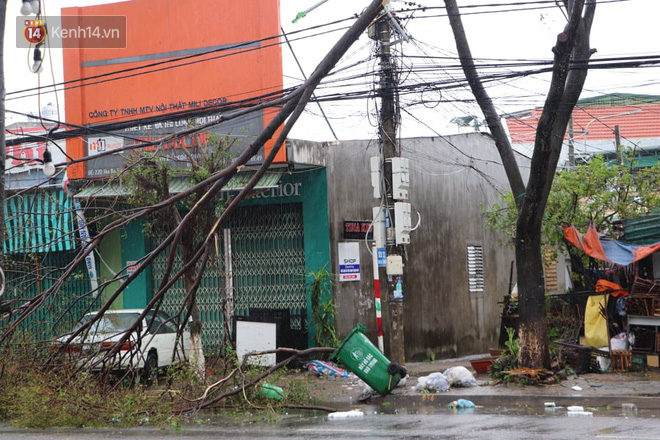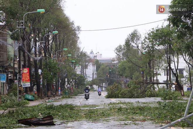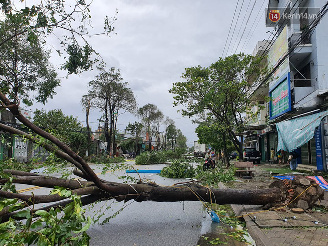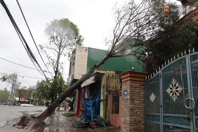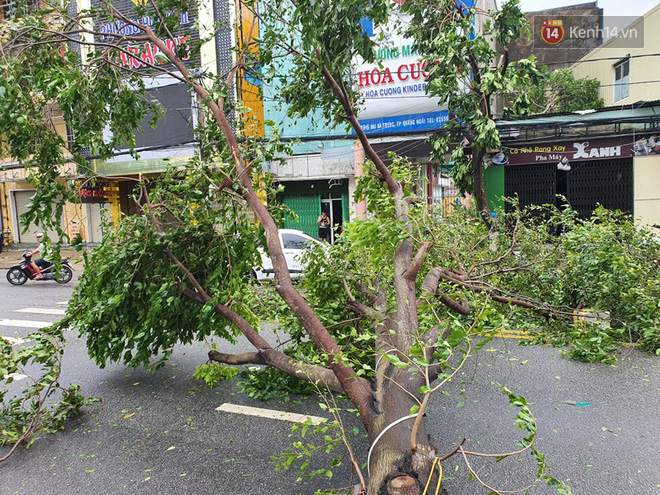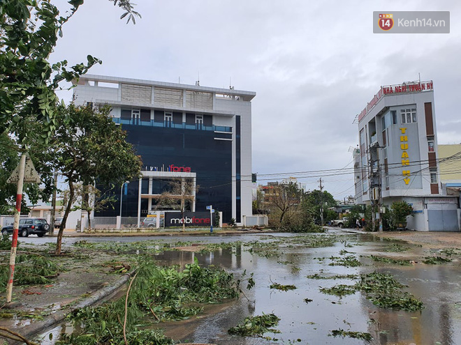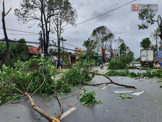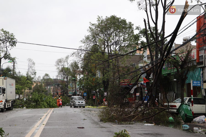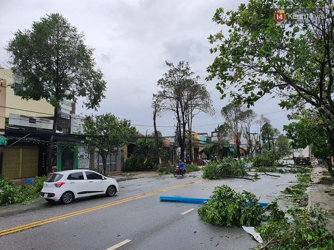 Ghi nhận tại TP. Quảng Ngãi lúc 14h chiều 28/10, dù lúc này trời đã tạnh mưa nhưng vẫn còn gió giật mạnh, một số tuyến đường bị ách tắc giao thông giao cây cối ngã đổ nằm la liệt trên đường.