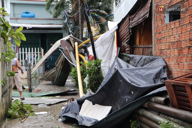 Tại phường Lê Hồng Phong, nhiều nhà dân bị tốc mái, sập tường nặng nề. Đứng trong căn nhà trống hoác, anh Lân cho biết vì nhà yếu nên không dám ở, đến khi bão tan thì về nhà đã không còn. "Mất cả rồi, tối nay nhà anh chẳng biết ngủ đâu", anh Dân nói.
