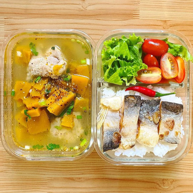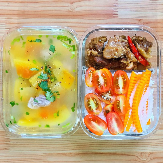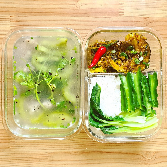 Khoảng đầu năm nay, quán cơm của công ty Đức đóng cửa, cộng thêm một vài lý do khác khiến anh chàng quyết tâm tự nấu cơm mang theo đi làm cho có cái bỏ bụng mà không cần phải đi ăn xa hoặc đặt cơm online. Nhằm tiết kiệm thời gian, Đức thường chuẩn bị sẵn các nguyên liệu nấu ăn từ chiều tối hôm trước rồi cho vào tủ lạnh. Sáng hôm sau, anh chàng dậy sớm hơn một chút để cắm cơm và chỉ cần thêm độ 15-20 phút nữa là đã có ngay một hộp cơm ngon lành, đủ dinh dưỡng rồi. Mỗi hộp cơm của Xuân Đức có giá dao động từ 15-40k tùy món.