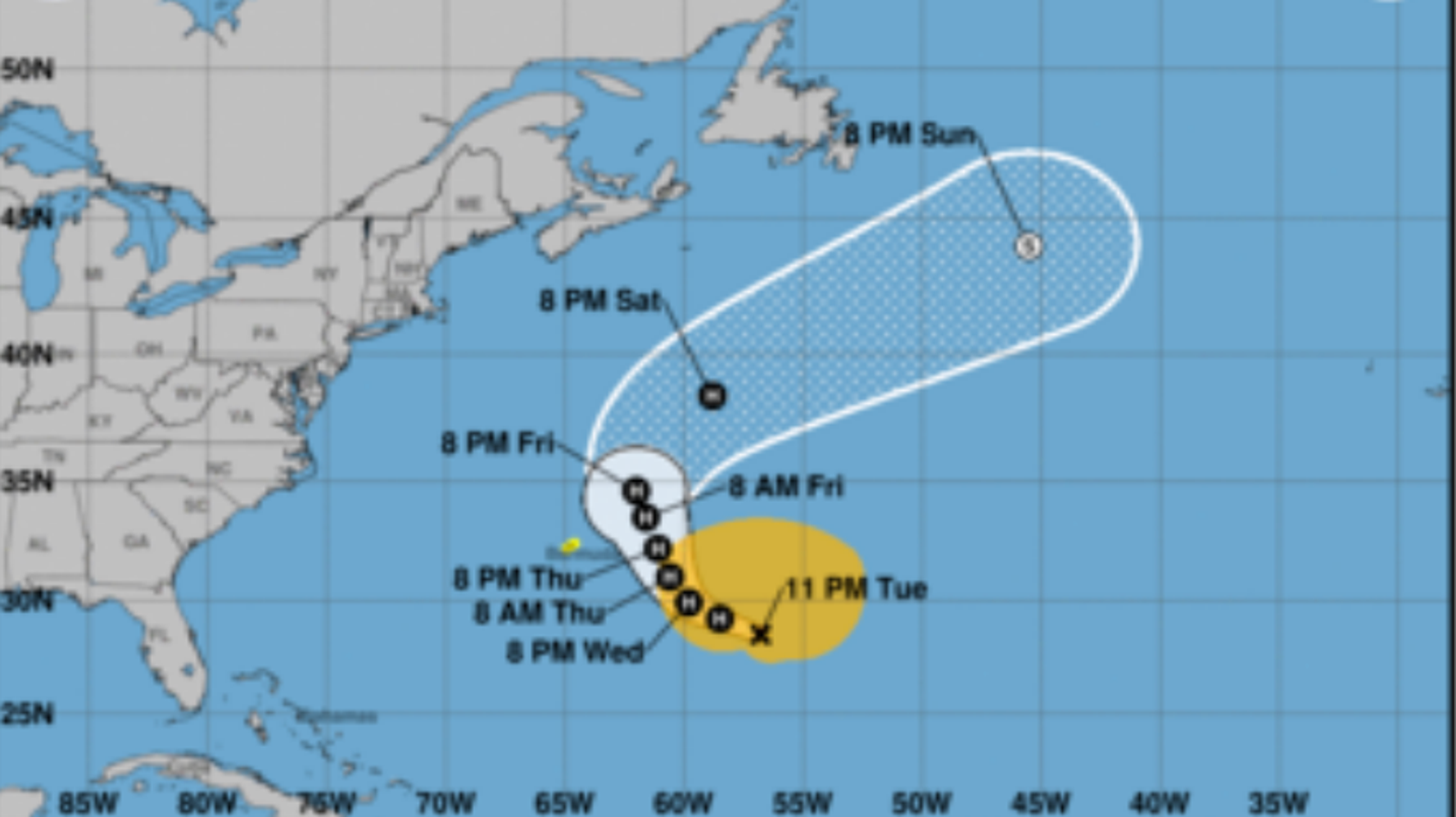 Epsilon is expected to make its closest approach to the island on Thursday night, and there is a risk of a direct impact, according to the U.S. National Hurricane Center. A tropical storm watch is in effect for Bermuda and residents have been urged to closely monitor the storm.