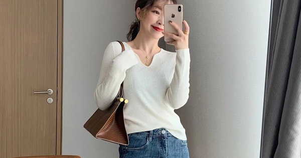 Thứ 4: Áo len cổ V đơn giản và quần jean ống đứng