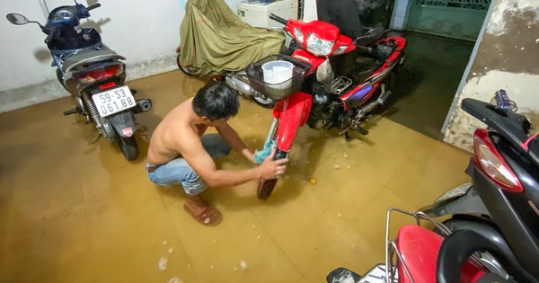 "Chúng tôi cũng quá quen với triều cường gây ngập nhà rồi, mặc dù vất vả nhưng phải chấp nhận sống chung với nước. Tranh thủ triều cường gây ngập nhà, tôi lấy nước và xà bông lau chùi xe máy luôn", một người dân chia sẻ.