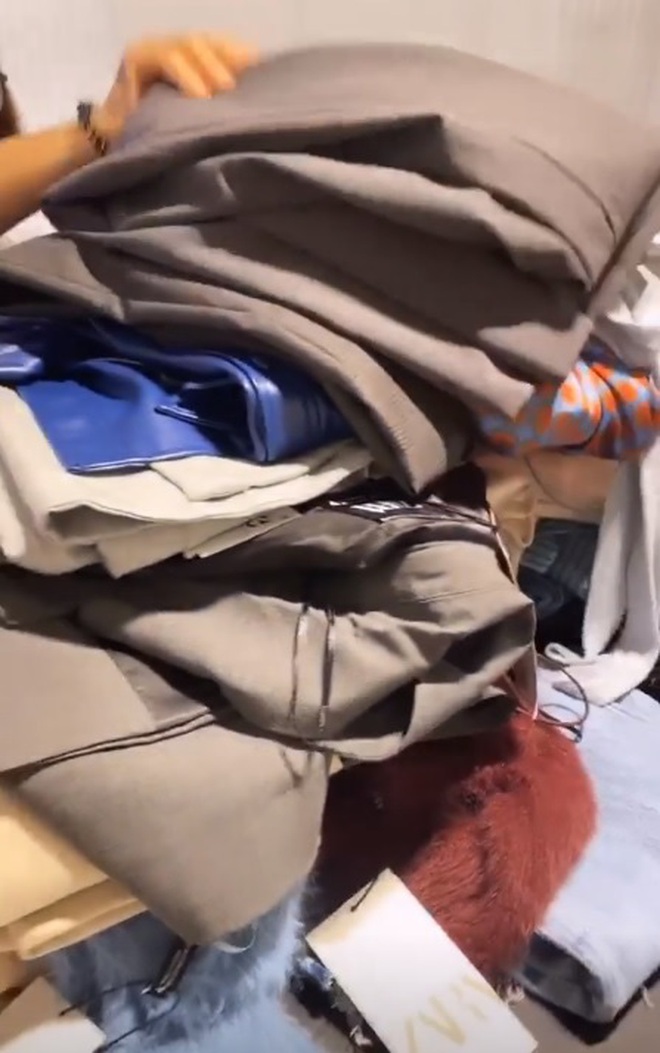 Bên cạnh Zara, tiện 1 công shopping cô còn ghé sắm luôn đồ của Stradivarius khiến quần áo chất cao thành đống, túi lớn túi nhỏ không đếm xuể.