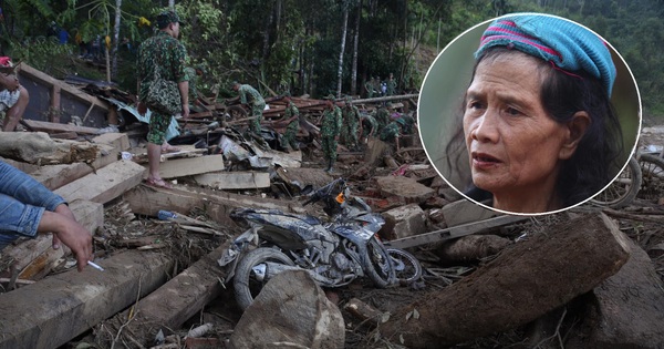 Ngồi gục khóc bên đống đổ nát, bà Hồ Thị Hồng (74 tuổi) như chưa dám tin chuyện gì đã xảy ra đối với 8 người thân của bà. Bà kể vào ngày hôm qua bà cùng chồng đi làm rẫy ở xa không về được. Người con trai của bà chạy lên rẫy, dặn dò bố mẹ đi làm chú ý sạt lở.