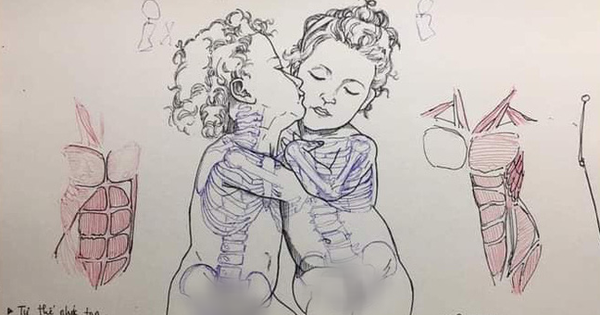 Từ suy nghĩ đó, Ánh Linh (nữ sinh lớp 8 trường THCS Mai Dịch, Hà Nội) đã vẽ lại cơ thể người khi giải phẫu. Từng đường nét đều được vẽ tỉ mỉ khi từ gân tay, múi cơ... cho đến khung xương bên trong, cảm xúc nhân vật.