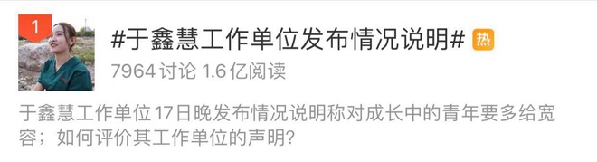 Trang The Paper đưa tin, Trung tâm y tế huyện Như Đông (thành phố Nam Thông, tỉnh Giang Tô, Trung Quốc), nơi Vu Hâm Tuệ đang làm việc, đã phản hồi chính thức vào tối ngày 17/10. Đơn vị này cho biết, Vu Hâm Tuệ hiện đang là nhân viên chính thức và được tham gia vào các sự vụ nội bộ của nơi này.