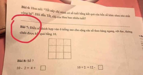 Đề Toán thi học sinh giỏi lớp 1 siêu hack não: 'Điền số sao cho tổng ngang - dọc - chéo bằng 10'