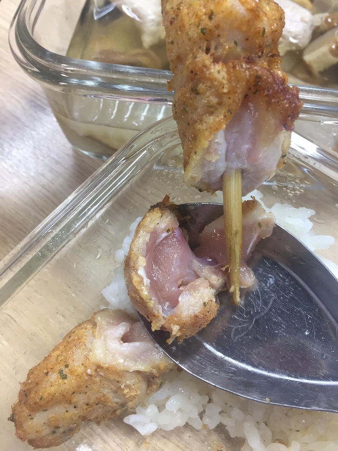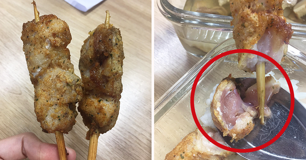 Theo đó, cô nàng đã order 2 phần gà xiên qua app giao hàng trong ngày 11/11, nhìn bề ngoài trông vàng rụm hấp dẫn, nhưng không ngờ khi ăn thì bên trong còn sống nguyên, thịt màu đỏ hồng nhìn rõ. Vì tai nạn này mà khổ chủ đã bỏ luôn bữa trưa.