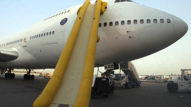 Đầu tiên, có thể thấy mục đích sử dụng của chiếc cầu trượt này không phải để cho vui mà là dùng cho hành khách thoát hiểm khi xảy ra tình huống bất đắc dĩ. Với thiết kế bằng hơi và trơn nhẵn, nó sẽ giúp chúng ta tiếp đất càng nhanh càng tốt để thoát thân. Hơn nữa, nhìn vào độ cao của chiếc máy bay cũng đủ thấy cầu trượt này dốc đến cỡ nào. Chính vì vậy, chuyện hành khách gặp rủi ro là hoàn toàn có thể xảy ra.