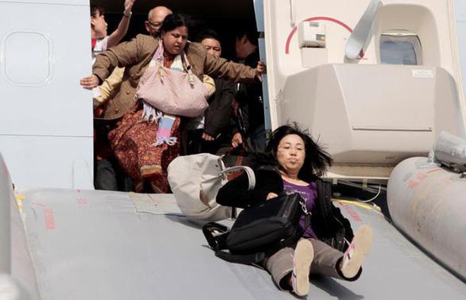 Dù sao đi nữa thì trong những tình huống khẩn cấp, thoát khỏi máy bay nhanh nhất vẫn là mục tiêu hàng đầu, những chuyện khác có thể từ từ tính sau!