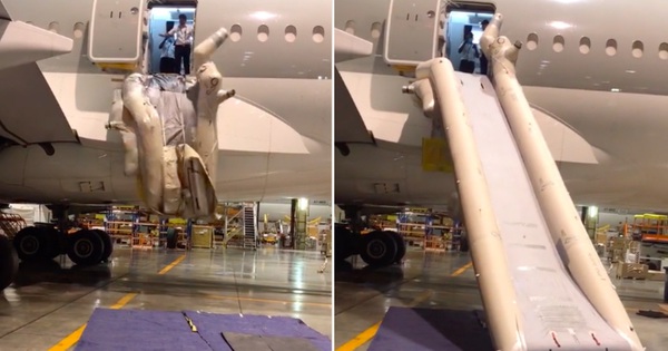 Đây là chiếc cầu trượt thoát hiểm bằng hơi, có thể được bơm phồng hoặc làm xẹp nhanh chóng và sử dụng giúp hành khách ra khỏi máy bay một cách nhanh nhất có thể. Mới đây, trên TikTok xuất hiện đoạn video ghi lại cảnh cách mà một chiếc cầu trượt thoát hiểm được thiết lập trong tình huống khẩn cấp.