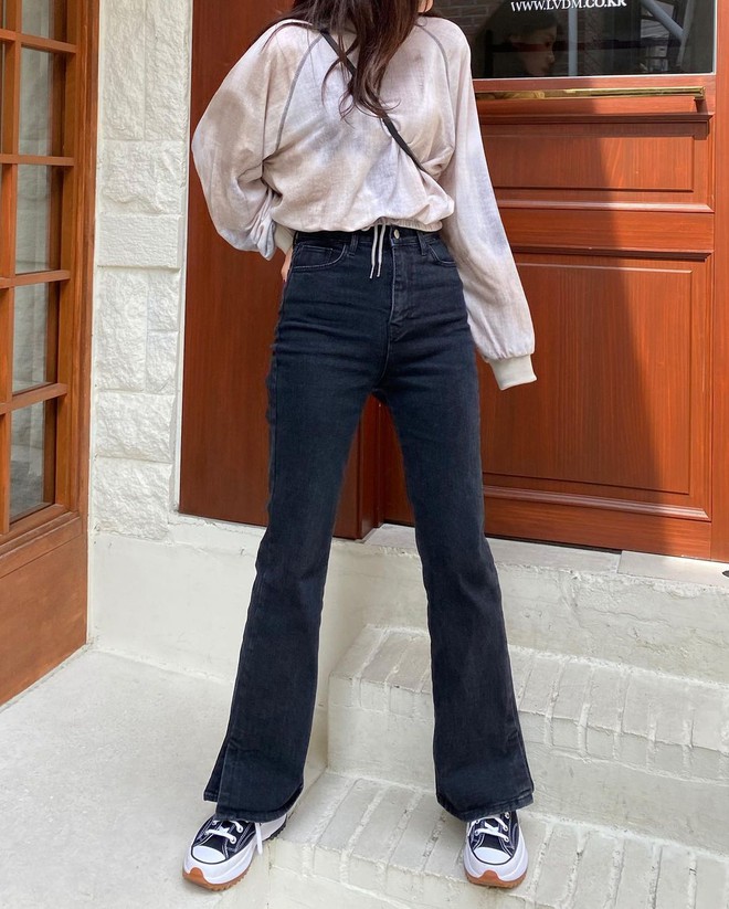 Khuyết điểm chân cong cũng khá phổ biến nên bạn không cần quá tự ti. Để che đậy điểm kém xinh này thì trước tiên bạn nên tránh xa quần skinny jeans nhé, vì kiểu quần này sẽ khiến phần chân cong lộ ra chiếm spotlight, rất nguy hiểm! Vì thế, hãy ưu tiên quần ống loe, chúng sẽ giúp bạn che nhược điểm tài tình. Ngoài ra, quần ống rộng cũng là lựa chọn hợp lý.