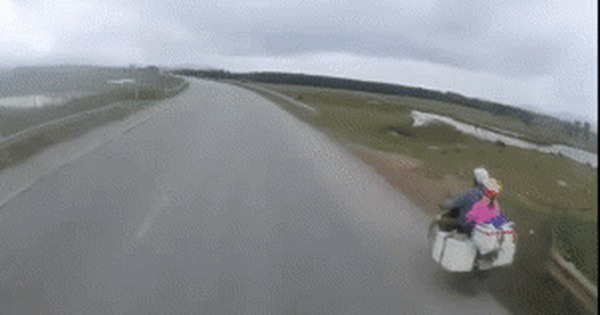 Theo dõi hình ảnh trong đoạn clip cho thấy, một nam thanh niên điều khiển xe máy với tốc độ cao cố tình lách vào giữa xe máy và ô tô tải để vượt lên. Tuy nhiên, trong lúc vượt lên chiếc xe này đã va trúng xe máy khiến hai người trên xe cùng hàng hóa phía sau ngã nhào ra đường.