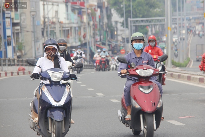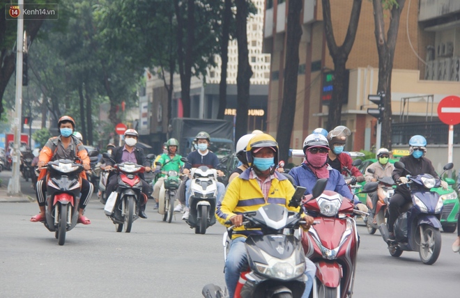 Chùm ảnh: TP.HCM mù mờ từ sáng đến trưa do ô nhiễm không khí, người dân cần 'che chắn' kỹ khi ra đường