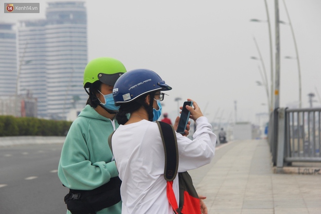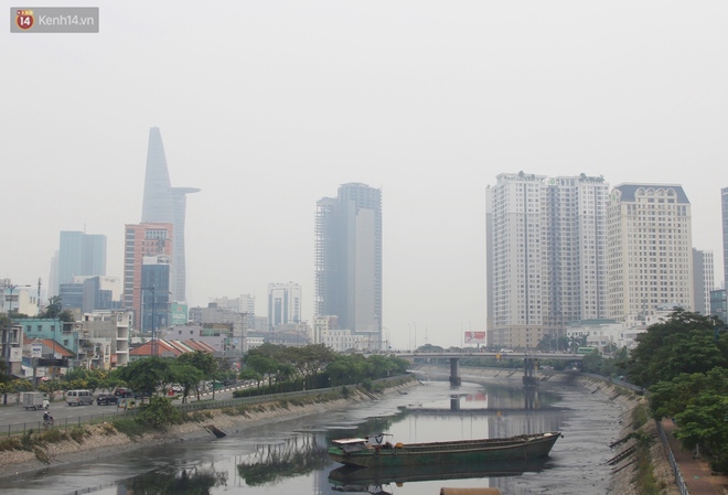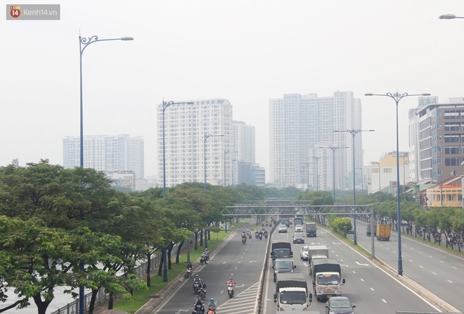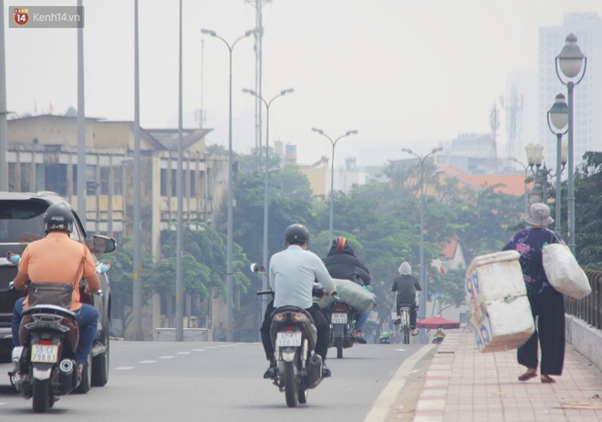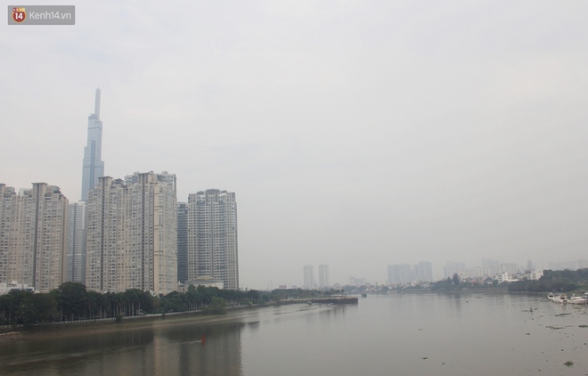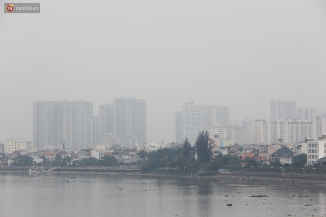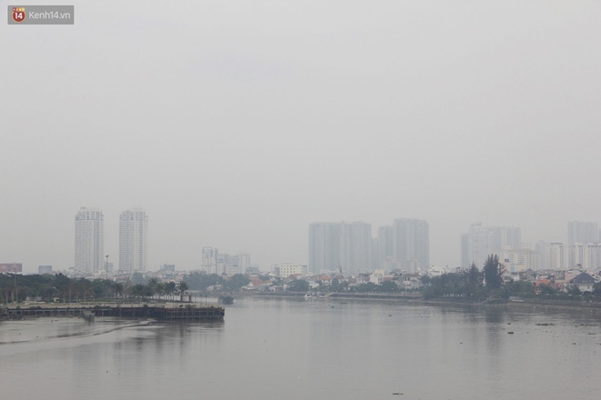 Tại cầu Sài Gòn, các tòa nhà phía quận 2 dường như bị lớp sương mù che mờ đi