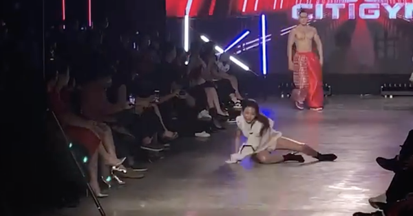 Clip: Thanh Tâm 'bắp cần bơ' ngã oạch trên sàn catwalk, trai 6 múi lập tức đến khuân đi