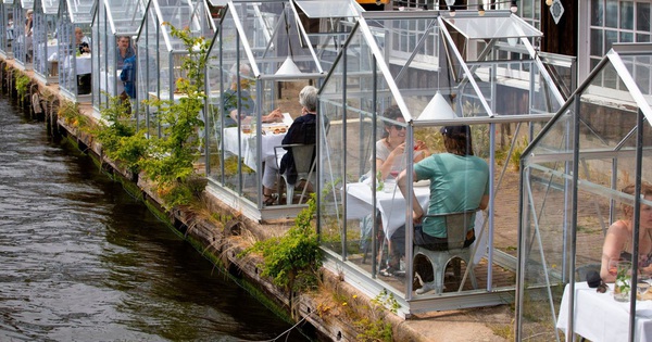 "Nhà kính cách ly" cũng là một sáng kiến độc đáo giúp người Pháp vẫn có thể cách ly dù không ở trong nhà. Đây là mô hình kinh doanh độc đáo trong bối cảnh COVID-19 diễn biến phức tạp ở châu Âu hồi tháng 6 (Ảnh: AP)
