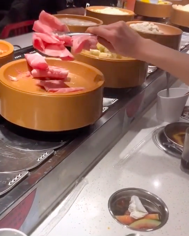 Mới đây, trên TikTok xuất hiện đoạn video trải nghiệm ăn lẩu băng chuyền khiến không ít dân mạng bức xúc. Cụ thể, khi thấy phần thịt đi qua trước mặt mình, chàng trai đã gắp sạch rồi cho vào nồi lẩu, để lại chiếc khay trống trơn.
