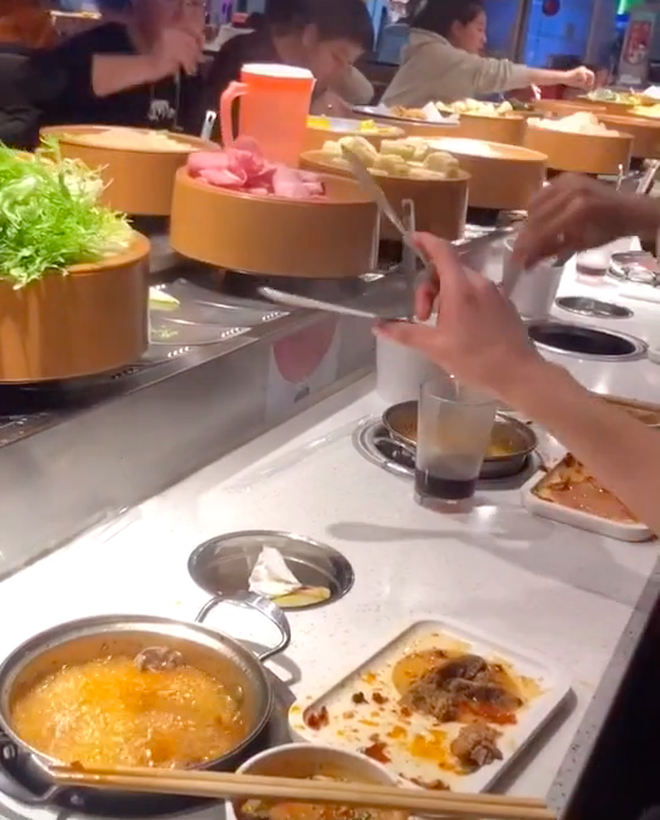 Gắp hết thịt cho vào nồi của mình khi đi ăn buffet lẩu băng chuyền, chàng trai khiến dân mạng tranh cãi gay gắt vì độ 'kém duyên'