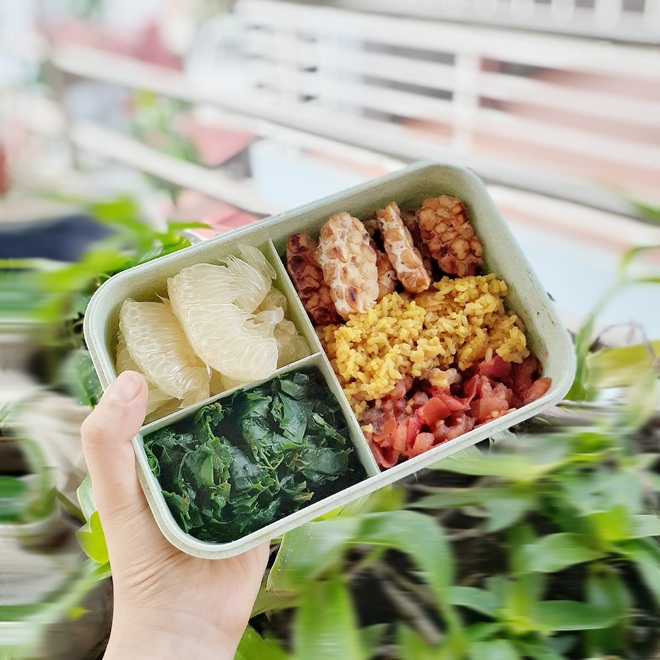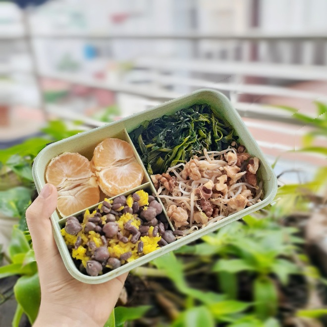 Mỗi sáng, Trang thường dậy sớm hơn 30 - 40 phút để nấu bữa sáng và bữa trưa cho cả ngày, bữa tối chỉ ăn hoa quả hoặc uống sữa. Vì chỉ ăn rau, đậu đỗ chung chung nên giá mỗi hộp cơm của Trang rất rẻ, dao động ở mức 40k/hộp mà thôi