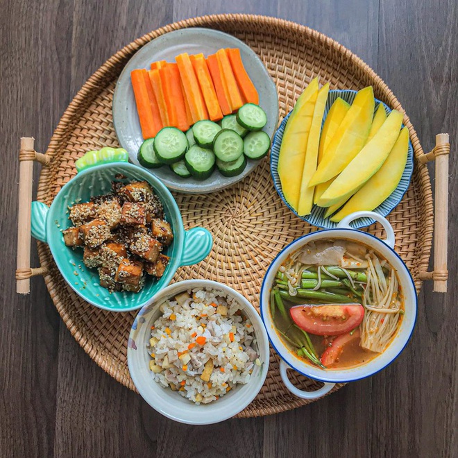 Tuy nhiên, khi các gái đảm trổ tài nấu món chay thì xin đảm bảo là bạn sẽ phải trầm trồ đấy. Dù là nguyên mâm cơm chay cho cả gia đình hay hộp cơm chay mang đi làm, hoặc có thể chỉ là mấy món chay ăn chơi thì những cô nàng này vẫn làm rất tâm huyết, chỉn chu. Kết quả là người ngoài đứng ngắm như chúng ta chỉ biết nhìn mà thèm!