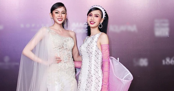 Lương Mỹ Kỳ (trái) và Lynk Lee (phải) đọ sắc tại thảm đỏ Aquafina Vietnam International Fashion Week 2020