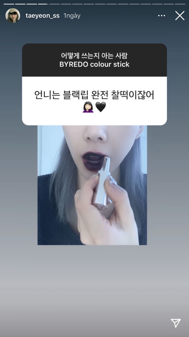 Mới đây, vì loay hoay không biết cách dùng thỏi son Byredo màu đen mà Taeyeon đã có một quyết định hết sức “dại dột”: post lên Instagram nhờ fan tư vấn. Các fan tư vấn thật tình thì ít mà bày trò chọc idol thì nhiều. Lại được thêm cô nàng TaeYeon cũng chịu khó “thực hành” theo sự hướng dẫn của fan. Và cuối cùng là dân tình đã được theo dõi một câu chuyện hết sức “tấu hài” như này đây: