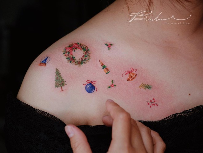 Một tiệm nail chất lừ khác còn update cả những hình xăm đậm không khí Giáng sinh rồi. Bạn muốn là "dân chơi" chính hiệu, thể hiện phong cách trendy thì nên tậu nhẹ một hình ở vai hoặc ngón tay cũng thú vị phết! Những hình xăm sáng tạo màu sắc xịn sò đẹp mê thể nào cũng đốn tim nhiều chị em cá tính.