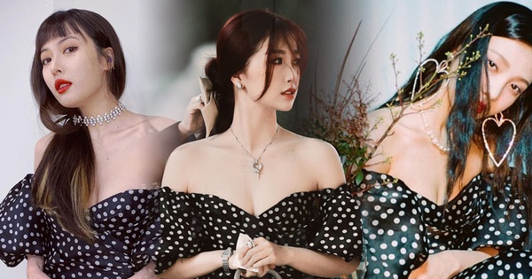 Khi diện những mẫu trang phục gợi cảm, mỗi mỹ nhân lại có cách thể hiện nét sexy riêng biệt. Trong màn đụng hàng mới đây, Joy, Hyuna và Ngu Thư Hân đã có màn đọ dáng đáng chú ý trong mẫu váy trễ vai của thương hiệu Rasario. Dù cả Joy và Huyna đều rất xinh nhưng Ngu Thư Hân vẫn chiếm trọn spotlight nhờ lợi thế vòng 1 căng đầy.
