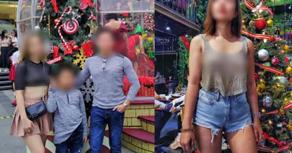 Không những thế, những chiếc áo xanh, đỏ hay những chiếc bờm tuần lộc, bông tuyết... cũng được trưng dụng làm phụ kiện cho các gia đình. Nhưng trong không khí náo nhiệt ấy, hình ảnh một người phụ nữ ăn mặc phản cảm, có phần "đốt mắt" người nhìn khi chụp ảnh cùng gia đình bên cây thông Giáng sinh được chia sẻ lên mạng xã hội gây xôn xao.