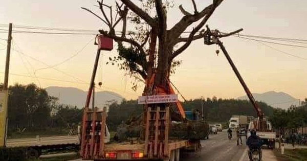 Sau đó, trên mạng xã hội đã chia sẻ về việc chiếc ô tô đang trên đường vận chuyển một cây "khủng" đi qua đường tránh Kỳ Anh (Hà Tĩnh). Trong đó, chiếc cây có kích thước khổng lồ, cao gấp đôi chiều cao của đường dây điện băng ngang đường.
