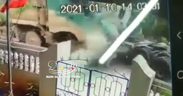 Theo đó, đoạn clip được trích xuất từ camera an ninh của nhà dân hiển thị thời gian khoảng 14h ngày 10/1. Thời điểm này, chiếc container và xe ben di chuyển ngược chiều nhau với tốc độ khá nhanh, khi đến trước cổng nhà dân không kịp né tránh đã tông trực diện vào nhau đầy kinh hoàng.