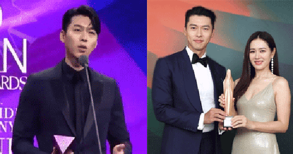 Tuy nhiên, không vì thế mà shipper của Hyun Bin - Son Ye Jin phải buồn phiền. Trong lễ trao giải hôm qua, Hyun Bin đã giành Daesang với vai diễn Đại úy Ri Jung Hyuk trong Hạ Cánh Nơi Anh. Nam tài tử đã chuẩn bị 1 bài phát biểu, gửi lời cảm ơn đến đoàn làm phim và lời cảm ơn ngọt ngào nhất cho bạn diễn kiêm bạn gái của anh - Son Ye Jin, lại còn khéo léo lồng ghép tình cảm qua tên nhân vật. Đáng nói đây chính là làn đầu tiên Hyun Bin đích thân công khai nhắc đến bạn gái Son Ye Jin kể từ sau khi xác nhận hẹn hò, lại còn tại chính lễ trao giải khủng.