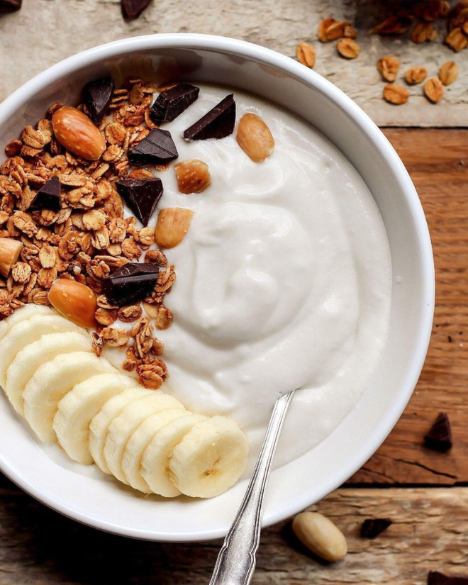 Ví dụ đơn giản buổi sáng ăn 1 lát bánh mì ngũ cốc cùng với bơ đậu phộng, thêm một hũ sữa chua trộn cùng granola là đảm bảo vừa ngon, vừa no mà dinh dưỡng thì khỏi bàn cãi. Chăm chỉ ăn đều đặn mà không khoẻ hơn, đẹp lên mới là lạ đó.