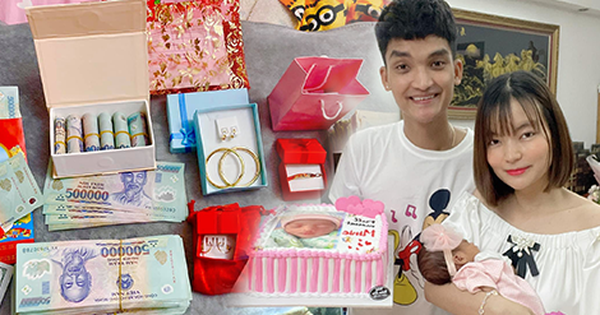 Vy Pumpe khoe tiền mừng và vòng vàng con gái nhận được trong ngày đầy tháng