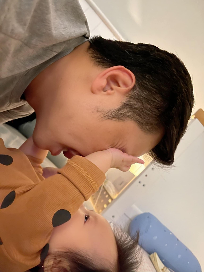 Đàm Thu Trang cũng rất thích thú mỗi khi ngắm khoảnh khắc bình yên của chồng và con gái cưng