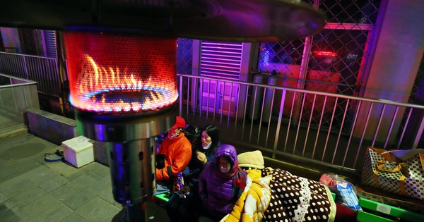 Trước cảnh "màn trời chiếu đất" trông người thân bị bệnh, cây sưởi giúp mọi người xua tan cái lạnh thấu xương của Thủ đô trong những ngày này
