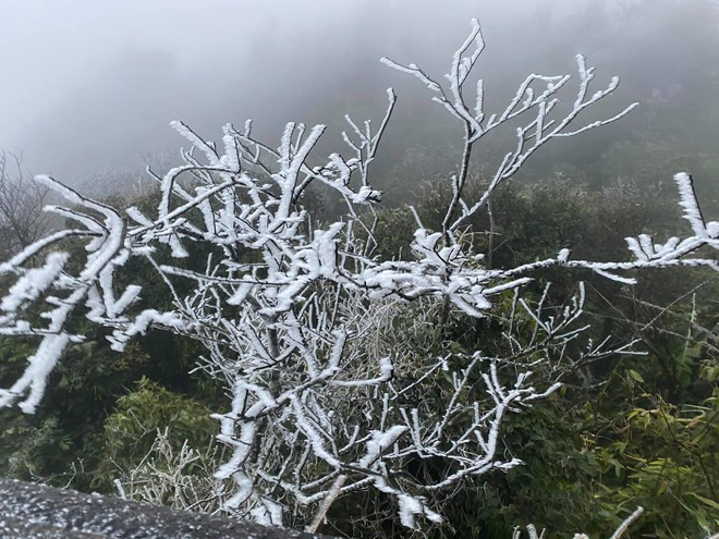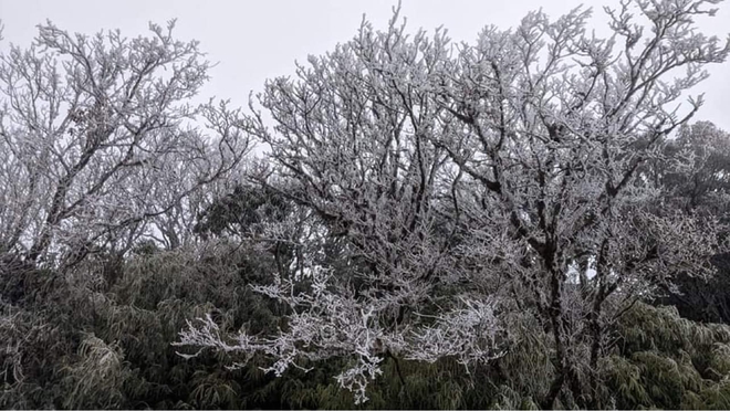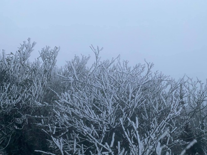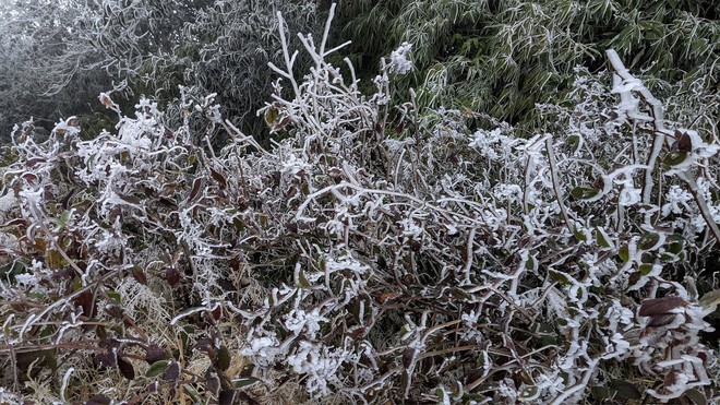 Băng giá phủ trắng cây cối trên đỉnh Phja Oắc