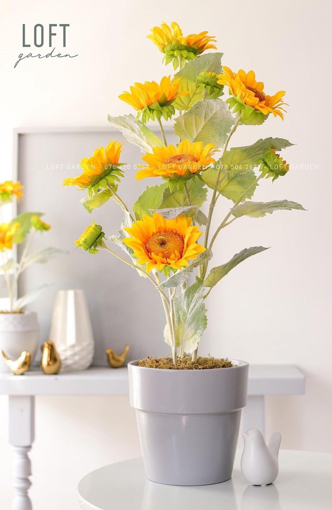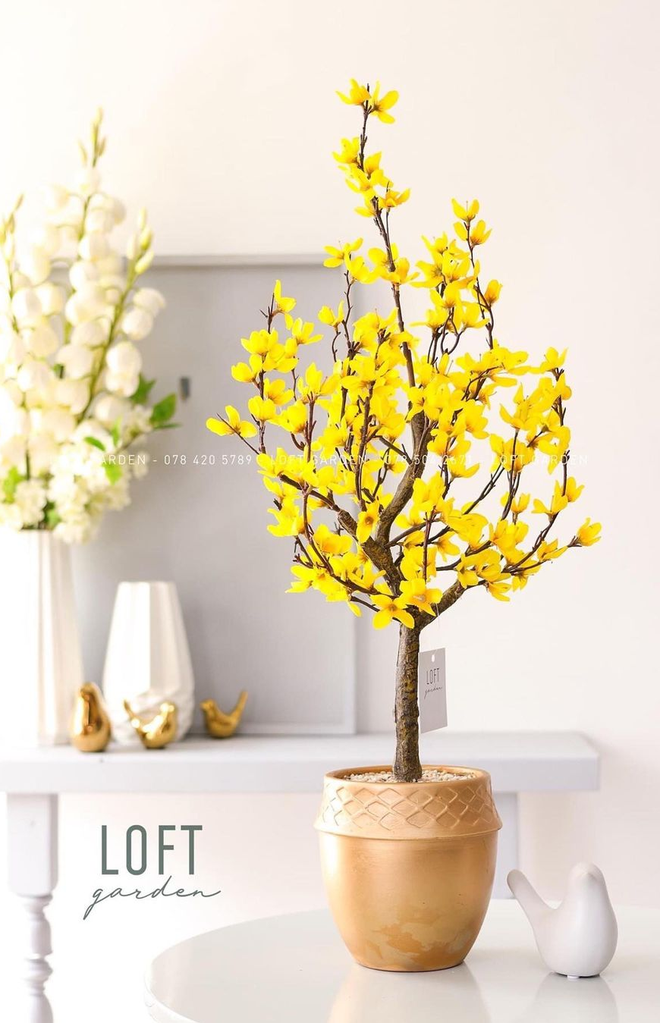Ở Loft Garden thì có cây giả đẹp như thật, nên bạn có thể mua về trưng lâu, không sợ cây héo, hoặc cũng có thể để dành năm sau dùng tiếp được luôn. Tiệm có nhiều loại cây hoa xịn mịn như mai Mỹ, đào đông đỏ, lựu, hoa hướng dương. Trong đó, có loại bán theo chậu giá từ 625k - 1375k, loại bán theo cành giá từ 95k - 185k.