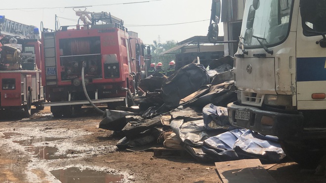 Sau hơn 1 tiếng đồng hồ nỗ lực dập lửa, đám cháy được dập tắt, không cháy lan sang nhà xưởng.