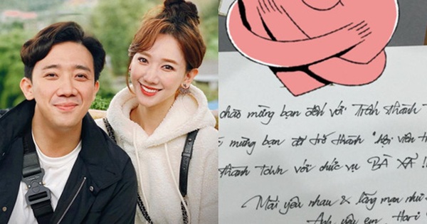 Hari Won hào hứng chia sẻ thư tay mà Trấn Thành viết cho mình
