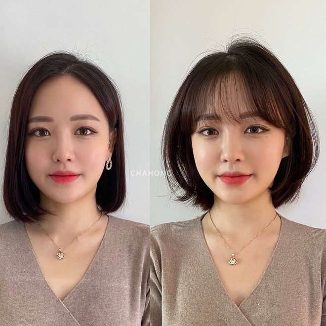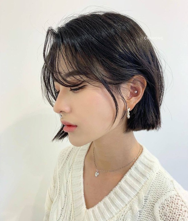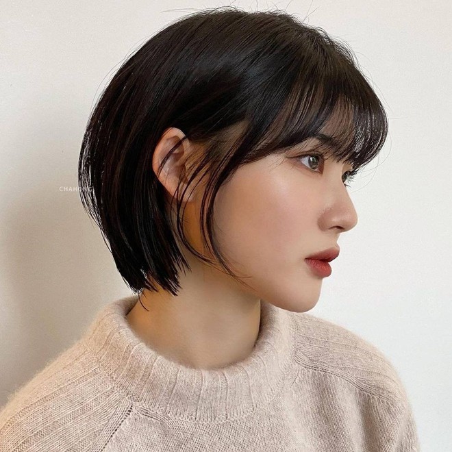Mê tóc ngắn cá tính, bạn hãy "áp" ngay kiểu tóc bob cắt ngang này, chắc chắn vẻ ngoài xịn sò và trừ tuổi không ít đâu. Nếu chưa quen diện tóc ngắn ngang cằm, hãy kết hợp thêm mái thưa, mái bồng để visual thêm ngây thơ, nữ tính chút nhẹ. Kiểu tóc này được các chuyên gia đánh giá là có khả năng chỉnh sửa góc cạnh gương mặt rất tốt, khiến bạn trông dễ thương hơn.