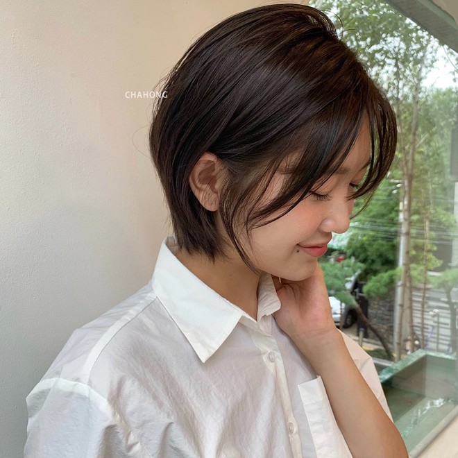 Cuối cùng chính là kiểu tóc tém ôm nhẹ nhàng vào phần gáy vừa trẻ, vừa hợp thời mà chị em có thể thử ngay dịp Tết đó nha. Diện kiểu tóc này, tổng thể sẽ gọn gàng hơn vài chân kính, khuôn mặt cũng mềm mại hơn. Phần đuôi tóc cụp vào trong giúp gương mặt thanh thoát thấy rõ. Hội gái Hàn, Nhật thường mix tóc tém tỉa layer nhẹ phần đuôi với mái thưa để cộng điểm trẻ xinh, đáng yêu nữa đấy!