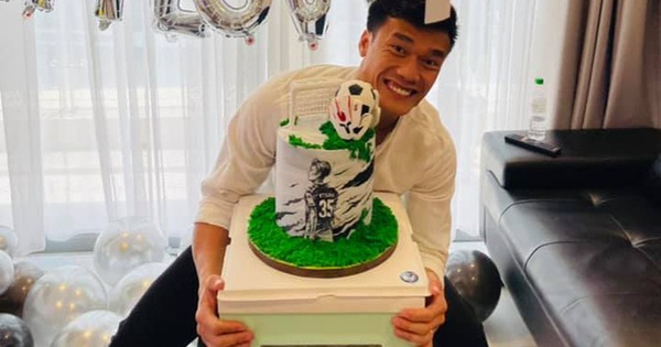 Đặc biệt nhất phải kể đến chính là chiếc bánh kem được trang trí cầu kì, phác họa chân dung thủ môn Bùi Tiến Dũng trong trang phục áo đấu số 35 quen thuộc. Bên trên chiếc bánh được tạo hình cầu gôn, quả bóng và găng tay bắt bóng - đây đều là những thứ quen thuộc gắn liền với sự nghiệp thủ môn của Bùi Tiến Dũng.