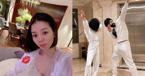 Điều này dễ thấy nhất khi cặp đôi check-in bức ảnh có những chi tiết giống hệt nhau vào đêm 20/2 trên mạng xã hội. Cụ thể, Lệ Quyên đã đăng khoảnh khắc selfie mặc đồ ngủ gợi cảm trong không gian phòng khách sang trọng, phía sau là chiếc bàn ăn có 3 bình hoa lớn. Trước đó vài giờ, Lâm Bảo Châu cũng đăng hình 3 bình hoa này, khoe mua được những bó hoa rất ưng ý.