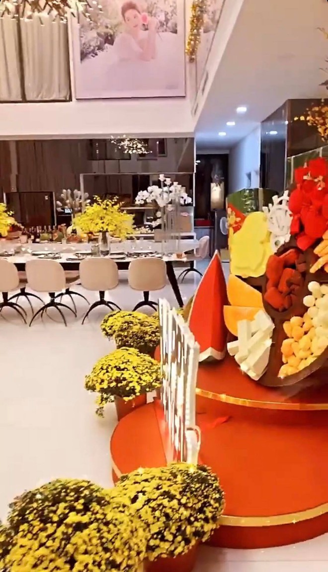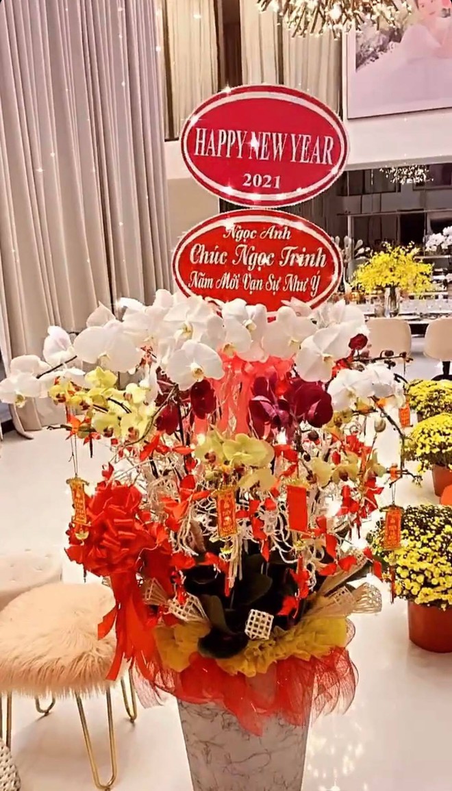 Đợt Tết Tân Sửu 2021 này, Ngọc Trinh còn trang hoàng nhà cửa “ác” hơn nữa. Mới hôm trước, nhà Ngọc Trinh trông như… trung tâm thương mại với những standee mô hình đồ Tết khổng lồ. Cho tới nay, phòng khách của biệt thự 40 tỷ lại rực rỡ như vườn hoa, ngập tràn các loại hoa quý, hoa đặc trưng ngày Tết.