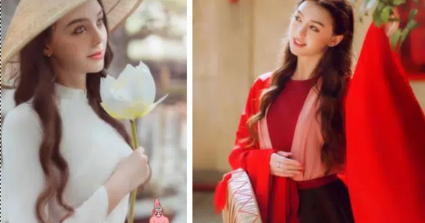 Dianka - nàng WAGs đến từ Ukraine, bạn gái thủ môn Bùi Tiến Dũng đặc biệt thu hút trong lần đầu diện áo dài truyền thống Việt Nam.
